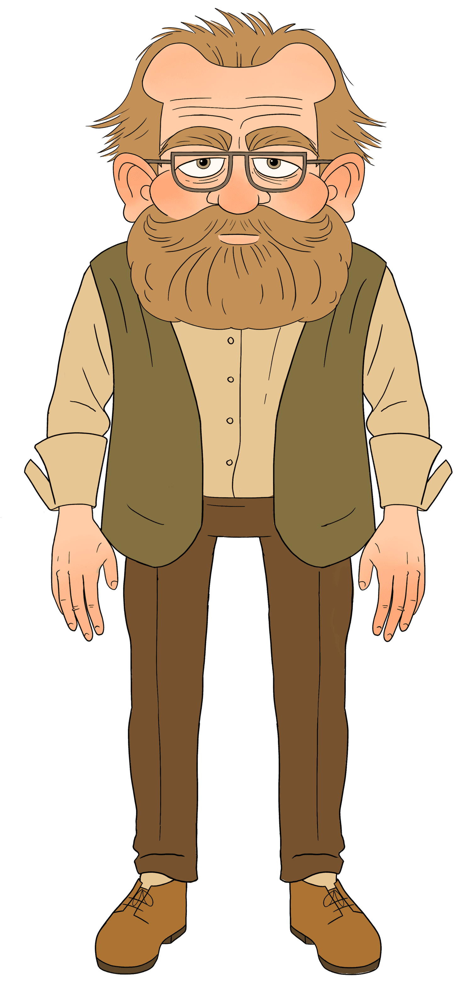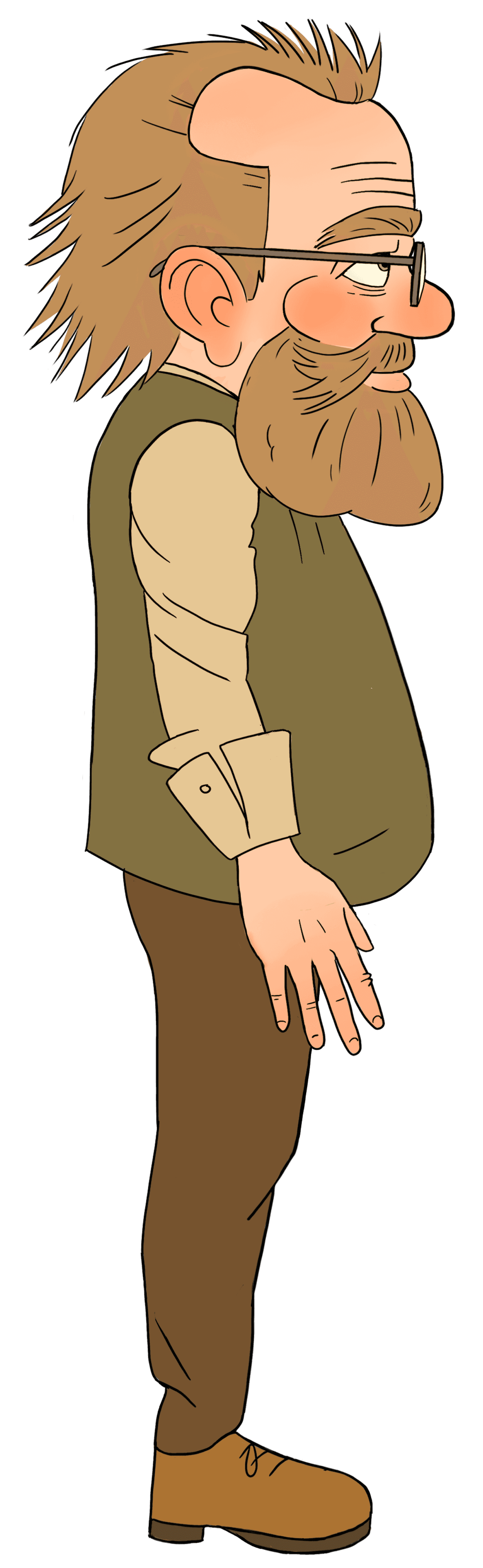 I designed Motley to appear intellectual and curious, driven by a desire to learn about the world. He speaks thoughtfully and only when he feels he has something important to say.