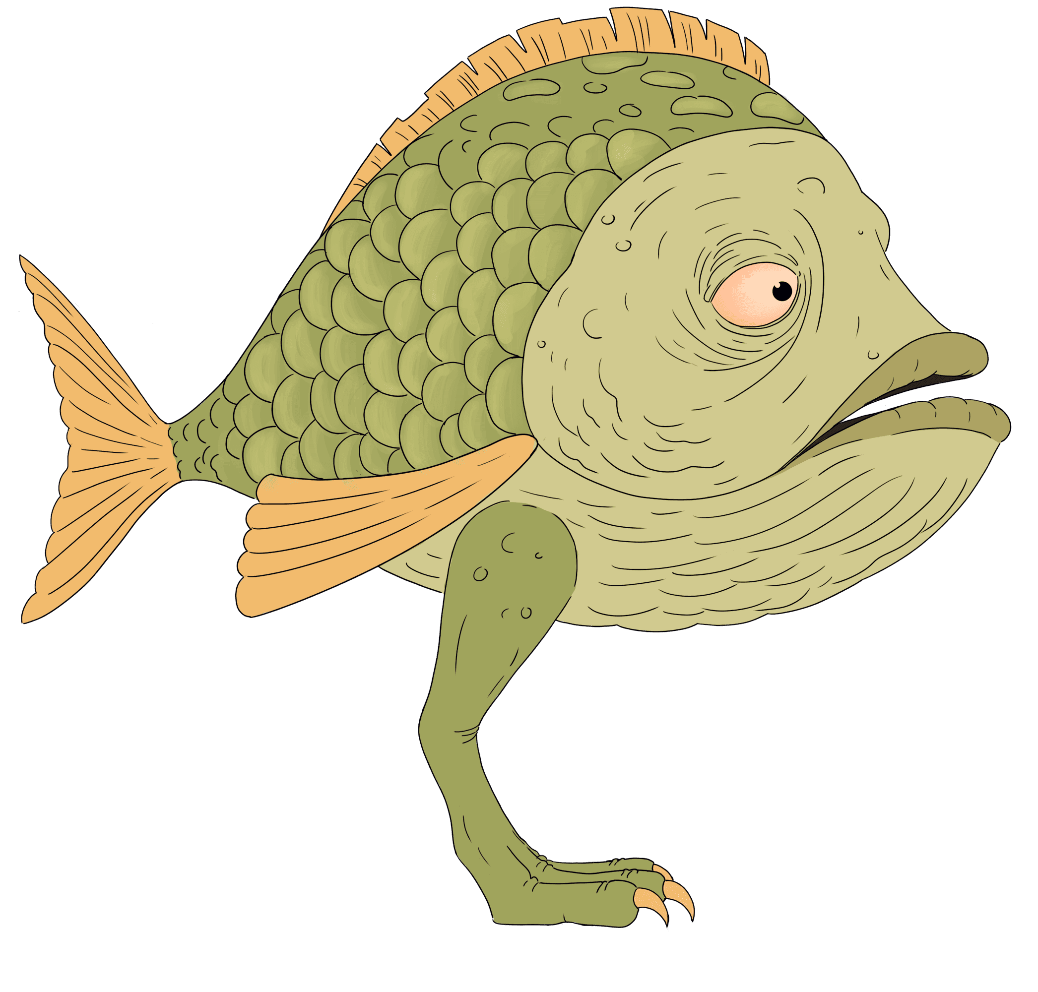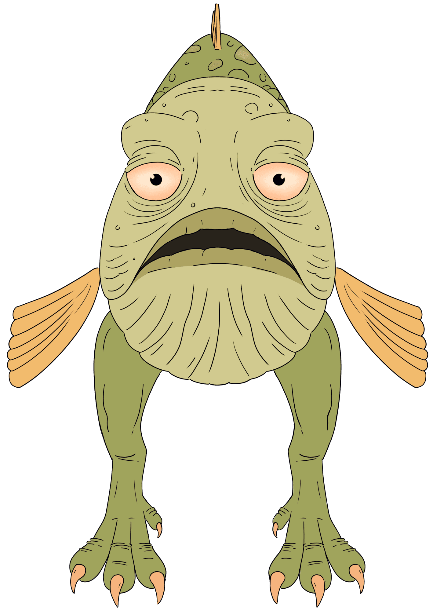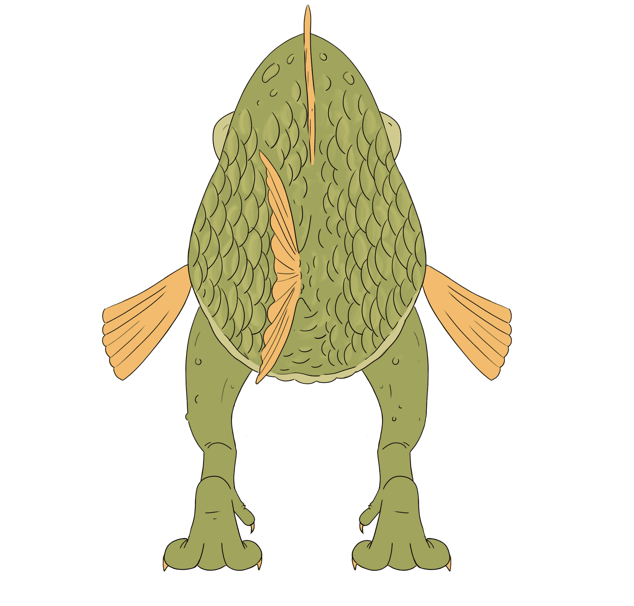 Bernard was designed to resemble something from ancient times. He's a big, slow land fish and has an unfriendly, serious personality. I used mostly large, curved shapes to build him to reflect his character.